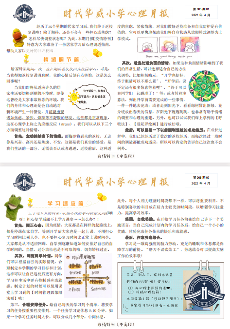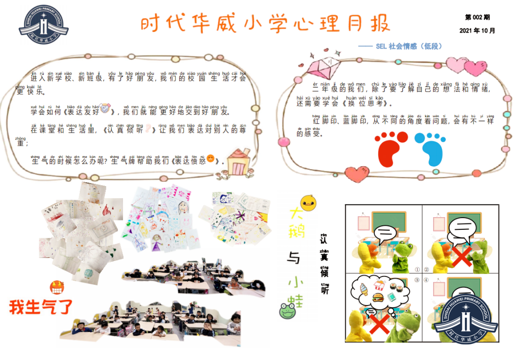 一切的学习都是为了回归到生活的本质和美好情感的体验,在时代华威小学,学生的心理健康发展是“底层逻辑”,更是“顶层设计”,本着“以学生为中心”的宗旨,不忘教育初心,为孩子创建良好的学习与成长环境。